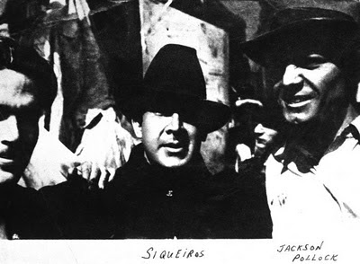Aquí y allá señalan que Pollock había estudiado en el taller montado por David Alfaro Siqueiros en New York, y que fue en ese tiempo cuando experimentó con el soplete y la pintura sintética. Lo llamativo es que el mexicano, que en 1932 había escrito el Manifiesto «Los vehículos de la pintura dialéctico/subversiva», poco tiempo más tarde se proponía enseñar en base a estos criterios: