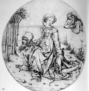 No parece casual el parentesco entre ambas imágenes. Que en este caso estemos en presencia de caballos de tiro obedece quizá al hecho de que la Salomé no sedujo a uno sino a dos filósofos. Las palpitaciones amorosas de los dos amigos fueron suficientemente intensas como para permitirle a esta nueva Phyllis atarlos sin mucha resistencia a su carro.