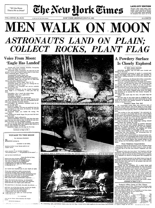 El 21 de julio de 1969, Neil Armstrong de 38 años, camina sobre la luna. Es el primer hombre en hacerlo. Esa fue la noticia. Eso dicen. Así lo encontramos hoy en textos, fotos, videos, en la red, en enciclopedias o en diarios de la época. La nave Apolo XI había partido unos días antes, el 16 de julio, de Cabo Kennedy, Florida. La tripulación estaba constituida por el comandante Armstrong, por Edwin Aldrin y por Michael Collins, el piloto. Seis horas y media después del alunizaje, Amstrong baja por las escaleras y enciende la cámara de televisión para que todo el mundo vea esas imágenes.