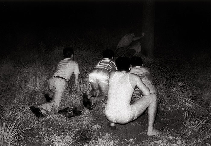 Con su cámara de 35 mm y flashes infrarrojos, el fotógrafo japonés Kohei Yoshiyuki (1946) a fines de los 70 se internaba por las noches en dos parques de Tokio, el Shinjuku y el Yoyogi, para tomar imágenes de personas manteniendo relaciones sexuales. Y era frecuente también que, amparados por la oscuridad, hubiese otros alrededor observando las escenas. Individuos congelados en el gesto de la vacilación entre acercarse un paso más y tocar, o contenerse. Agazapados, en cuclillas, gateando, o como si suplicaran de rodillas. “Mi intención era capturar lo que sucedía en el parque, yo no era un ´voyeur´ como ellos”, dijo Yoshiyuki: “Pero, al fin de cuentas, tomar fotos es algo muy parecido. Así que quizá sea un voyeur porque soy un fotógrafo.”