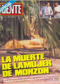 Unos días después, mi mamá trajo una revista Gente en la que la tapa estaba la foto de Alicia Muñiz. Mi hermano y yo miramos la revista bajo un árbol, a la hora de la siesta: el cuerpo de Alicia aplastado contra el piso, desnudo, dorado, una pata en alto como si estuviera mirando la televisión boca abajo en una cama, y el cuello dado vuelta, demasiado dado vuelta, y su cara que se oculta a la lente del fotógrafo. Está muerta. Podemos ver el peso muerto de su cuerpo en esa foto. Es como una roca: no hay ningún signo de vitalidad que empuje el cuerpo en dirección opuesta a la ley de gravedad. Nada que empuje hacia arriba, hacia el cielo, hacia la parte del mundo donde caminan y saltan los vivos. Él está arriba en una foto más chiquita, en un balcón, con la mitad del cuerpo enyesado, y mira hacia abajo junto a un hombre que viste un traje: ¿qué hace mirando desde el balcón? ¿no se había caído también él?