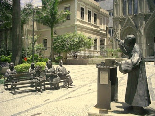Suelo sentarme acá, así mis piernas reposan un rato. Además entre ellos me siento en compañía. Sí, ya sé que puede causarle gracia lo que digo. Por lo menos no parlotean como aquellos que están cerca de la reja. Tanta reja para decirle a igreja de portas abertas. Una vez pude entrar al templo. Es todo blanco y con columnas. Sí, es la Catedral Presbiteriana ¿no sabía? Yo prefiero estar acá en la plazoleta. Al menos acá no tengo que escuchar la palabra del predicador. Éste también gesticula, pero su palabra no me llega.