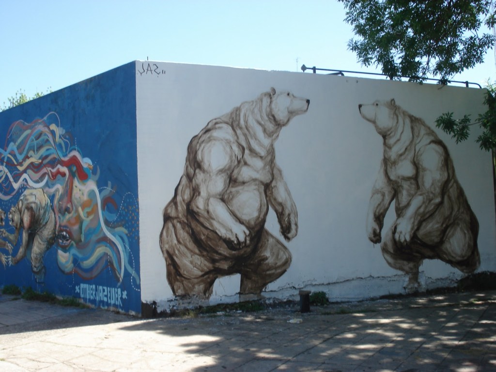 Estas pinturas no van a durar setecientos años, no van a durar ni uno antes que el mismo que las pintó o un colega les pinten otras encima, o antes que lleguen unos inversionistas demoledores. Son efímeras pero se multiplican, surgen en cualquier resquicio, nos rodean, como las construcciones nuevas pero en sentido contrario. Ponen en la calle toda la creatividad y el entusiasmo de estos pibes que atacan la cara de la ciudad para dibujarle otra, no ratoneras a crédito ni tinglados, paredes dadas a todos sin pedir nada, gracia, colores, corazón y delirio, sobre todo delirio en esta lucha.
