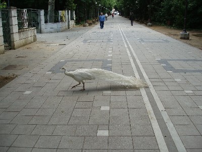 Crucé el puente en una, dos y tres ocasiones, destiempado y feliz. Lo cruzaba por cuarta vez, cuando vi a un transeúnte atípico: un pavo real venía en sentido contrario hacia mí.