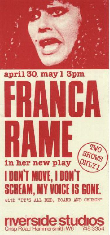 Fue a fines de los setenta y en Lima. Éramos menos de una decena de activistas del feminismo local reunidas en un grupo cuyas siglas tenía más letras que integrantes: ALIMUPER –Acción para la Liberación de la Mujer Peruana–. Dos periodistas, una maestra, una socióloga, estudiantes… la memoria puede ser aplanadora y no quisiera omitir a ninguna de aquellas bravísimas jóvenes, inteligentes y bellas, luchando para cambiar el mundo que se empeñaba en retratarnos horribles, rencorosas y maltratadas por el sexo masculino. El azar quiso que luego de un debate público conociéramos a Dominique D´Angelo, esposa del entonces director del Instituto Italiano de Cultura en Lima, quien, además de encantadora, culta y muy bien informada, era una feminista de ésas. Ella se integró pronto a nuestras reuniones y confabulaciones para poner el mundo en orden, en lo legal, político, social, cultural, en fin, no había tema al que le escapáramos. Eran épocas sin Internet y ni hablar de googlear así que accedíamos a nuevas ideas por fortuita recomendación de especialistas y/o complot de los astros. Los altos costos del transporte dificultaban la importación de periódicos de cualquier parte del mundo, y en los países latinoamericanos habían dictaduras por donde se mirara: sin ir más lejos, en mi país, Argentina, reinaban los señores de la vida y la muerte. Fue a través de Dominique que nos nutrimos de textos de la mítica Librería delle Donne, de Milán, de las discusiones europeas de los setenta, y el corrosivo humor de las protestas en este lado del mundo. Así que junto con Rossana Rosanda o Il Manifesto, un día llegó a nuestras manos una copia –¡escrita a máquina!– de los monólogos de Franca Rame y Darío Fo, que desde su debut en 1977 en el Palazzina Liberty de Milán, circulaban con notable éxito en teatros de ciudades italianas y europeas. Los monólogos habían sido tipeados en papel aéreo, hojas muy delgadas a fin de abaratar los costos del envío postal. Recuerdo la conmoción al leer esas historias de Tutta casa, letto e chiessa: eran la puesta en escena, desnuda y grotesca, de la relación entre los géneros, y sin embargo la protagonista mantenía su dignidad en medio de esa farsa, casi cómica, que anudaba lo privado e íntimo con lo social y político.