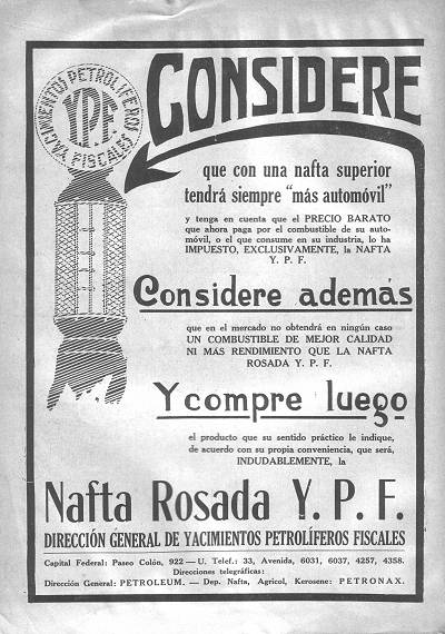 Los problemas de México no eran ninguna novedad para Mosconi. Hacía tiempo que el director de YPF venía sosteniendo una larga lucha por consolidar a la petrolera estatal frente a los mismos poderosos trusts y sus aliados políticos argentinos. Lucha que se tornó más intensa cuando en 1928 los directivos de la Standard Oil, la Royal Dutch Shell y la Anglo-Persian, reunidos en el castillo escocés de Henry Deterding, conformaban un poderoso cártel petrolero que eliminaba la competencia entre las tres compañías, repartíendo salomónicamente cupos del mercado internacional y fijando los precios. Si bien YPF había dado algunos pasos fundamentales para poder posicionarse dentro del mercado argentino, todavía quedaban muchas tareas por hacer, sobre todo en relación al desarrollo de la infraestructura de la empresa. La fuerte competencia de las empresas extranjeras (el 70 % del mercado petrolero argentino estaba controlado por dos compañías, la WICO y la Anglo-Mexican, que fijaban el precio de los combustibles en todo el país) y ciertos problemas en el sistema de distribución de naftas habían hecho que en 1929 la petrolera estatal tuviese almacenados grandes cantidades de petróleo y combustible sin vender. Mosconi ideó una estrategia con un doble objetivo: resolver este problema y dar un paso más hacia el control estatal del petróleo argentino. Y lo más interesante del caso es que recurrió a tácticas similares a las que utilizó John D. Rockefeller para quedarse con el virtual monopolio del petróleo en los EE. UU. Sin mediar anuncio alguno, entre agosto y noviembre de 1929 YPF redujo un 17% el precio de los combustibles al público. Tomadas por sorpresa, las distribuidoras extranjeras no tuvieron otra alternativa que bajar sus precios. Los siguientes treinta años el gobierno argentino mantuvo, en términos generales, esta política de precios bajos, cimentando al mismo tiempo la perdurable imagen de un YPF amigo del consumidor argentino. El punto débil del plan era que la expansión del consumo interno obligaba a recurrir al petróleo importado, y había claros indicios de que las compañías extranjeras estaban dispuestas a desabastecer el mercado para contrarrestar la baja general de precios lanzada y sostenida por YPF. Para dar respuesta a este escenario más que probable Mosconi tenía preparada una nueva sorpresa. La compañía soviética Iuyamtorg, dedicada al intercambio comercial entre la URSS y América del Sur, había inaugurado en 1926 una sede en Buenos Aires. A mediados de 1929, poco antes de iniciar su política de precios bajos, YPF firmó un contrato con los soviéticos. La petrolera argentina le compraba combustible a la Iuyamtorg a cambio del compromiso soviético de destinar lo percibido a la compra de productos argentinos derivados de la ganadería y la agricultura. Este acuerdo colocaba en las manos de Mosconi el combustible necesario para contrarrestar cualquier baja en la oferta de petróleo importado. Durante tres años la URSS enviaría a la Argentina 268.750 metros cúbicos de combustibles a un precio fijado por contrato. Una vez más, las grandes compañías internacionales que operaban en el país quedaron descolocadas. Si no acompañaban las restricciones de precios impulsadas por YPF corrían el riesgo de disminuir considerablemente su participación en el mercado interno argentino.