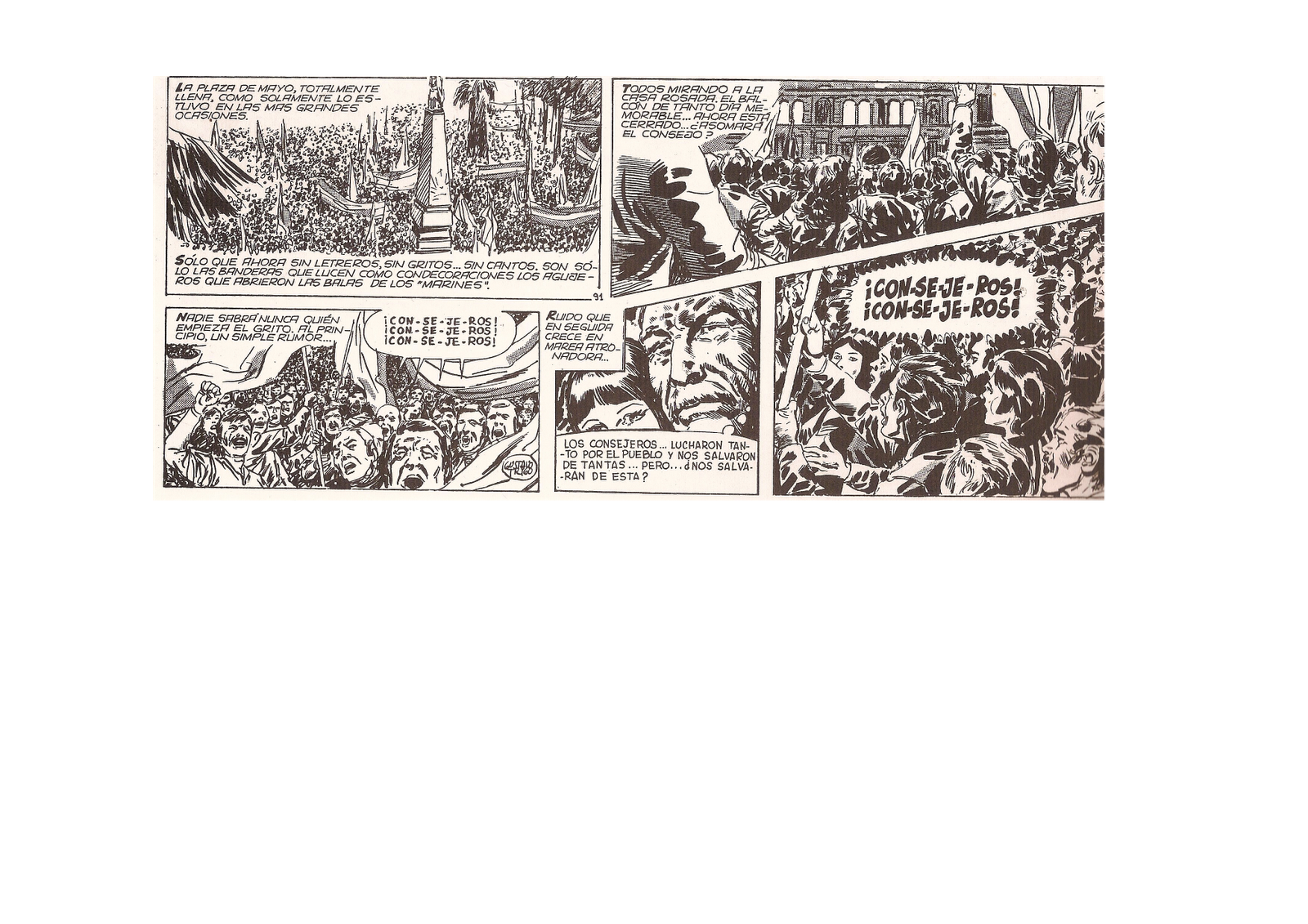 Durante los años ochenta y noventa circuló una imagen en remeras y pancartas en la que podía verse a los personajes inventados por el autor de El Eternauta en una manifestación cargando un cartel que decía: ¨Dónde está Oesterheld¨, como si sus personajes de historieta dejaran sus papeles por un rato para manifestarse públicamente en contra de la desaparición forzada de personas. Rodofo Walsh se volvió el emblema de los escritores desaparecidos, durante varios años en posdictadura su perfil tuvo más que ver con el escritor denuncialista de la carta abierta que con el militante revolucionario de Montoneros. En diciembre de 1993 fue el santiagueñazo.