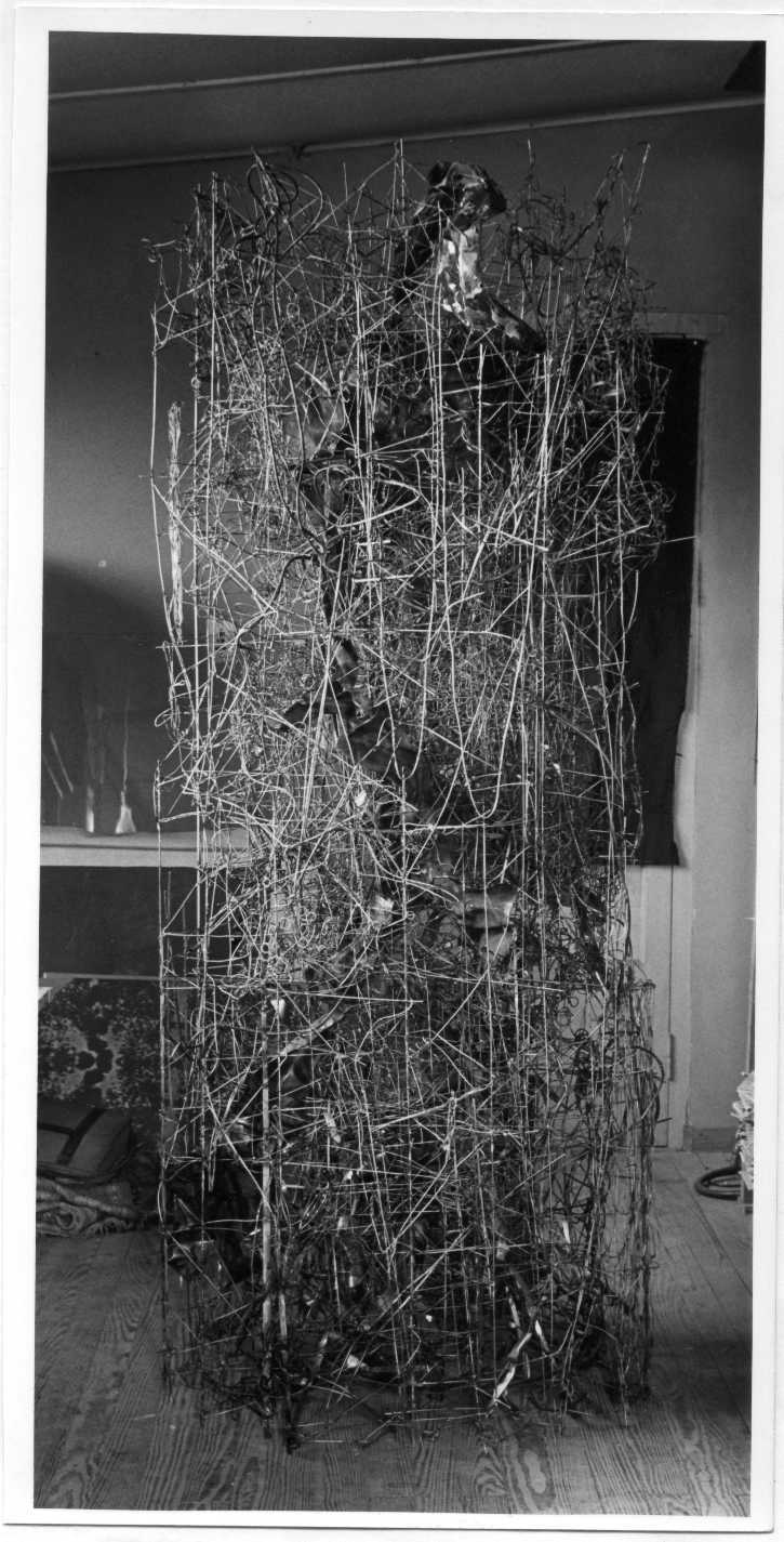 La materia del lenguaje fue trasladada también a su escultura, si bien aquí no hay letras, palabras, tampoco hay frases; el trabajo con el alambre como unidad mínima del sistema complejo de su Torre de babel (1964) establece una analogía con la lengua: la torre, como el lenguaje, está compuesta por la múltiple concatenación de unidades mínimas.