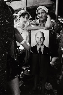 Como puede notarse en muchas fotos de esta serie, tomadas por Eduardo Gil en sucesivas marchas de 1982 y 1983, el sencillo procedimiento de las pancartas resultó impactante y eficaz, y desde entonces empezaron a portarse en las manifestaciones de derechos humanos una y otra vez. La iniciativa de los Mellibovsky marca una instancia crucial, una bisagra entre el uso personal y el alcance público: las fotos se despegan del círculo íntimo (familiar) para pasar a ser un dispositivo visual disponible para la multitud. Las presencias de los ausentes se alzaron -contundentes y conmovedoras- a una altura desde la que muchos más pudiesen sentirse interpelados y “mirados”. Este tránsito supone dos cuestiones importantes, una de orden práctico (la existencia o la generación de un archivo más o menos centralizado de fotos de desaparecidos entre los organismos de derechos humanos), y otra que implica la definición de una política visual (la incisiva conciencia del impacto que esos rostros marchando entre la multitud, o sobre ella, generarían entre los testigos).