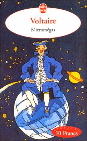 El señor don Micromegas, habitante de uno de los planetas que giran alrededor de la estrella Sirio, mide ocho leguas de alto. La circunferencia de su planeta es veintiún millones seiscientos mil veces más grande que la de la tierra. Siendo muy joven, con apenas doscientos cincuenta millones de años, cuando era “estudiante en el colegio de jesuitas de su planeta”, adivinó más de cincuenta proposiciones de Euclides. Se volvió sabio, escribió un libro acerca de si la forma substancial de las pulgas de Sirio era de la misma naturaleza que la de los caracoles que no gustó en su planeta y fue desterrado. Los siguientes ochocientos años se dedicó a viajar de planeta en planeta, hasta que llegó a Saturno. Su conocimiento sobre las leyes de la gravitación le permite a Micromegas saltar de un cometa al otro, montado en un rayo de sol. Saturno, más grande unas novecientas veces que la tierra, está habitada, en este cuento de Voltaire, por saturninos de unas “dos mil varas de altura”, enanos para Micromegas. Así y todo, luego de registrar que se trataba de hombres de razón, se hizo amigo del secretario de la academia de Saturno, “hombre de mucho talento, que a la verdad nada había inventado, pero que daba muy lindamente cuenta de las invenciones de los demás”. Juntos mantienen una extensa charla filosófica sobre las diferencias de sus respectivos planetas y deciden entonces emprender un corto viaje filosófico. No sin que la esposa del secretario se quejara, partieron los dos sabios. Primero anduvieron de luna en luna, hasta que pasó un cometa y “se tiraron a él con sus sirvientes y sus instrumentos”. Se detuvieron en Júpiter durante un año y luego partieron otra vez. Cuando pasaron por Marte les pareció tan chico que temieron no encontrar posada cómoda y siguieron hasta el siguiente planeta. Encontraron una aureola boreal a mano y se metieron dentro, bajaron a la tierra en la orilla septentrional del mar Báltico, el 5 de julio de 1737.