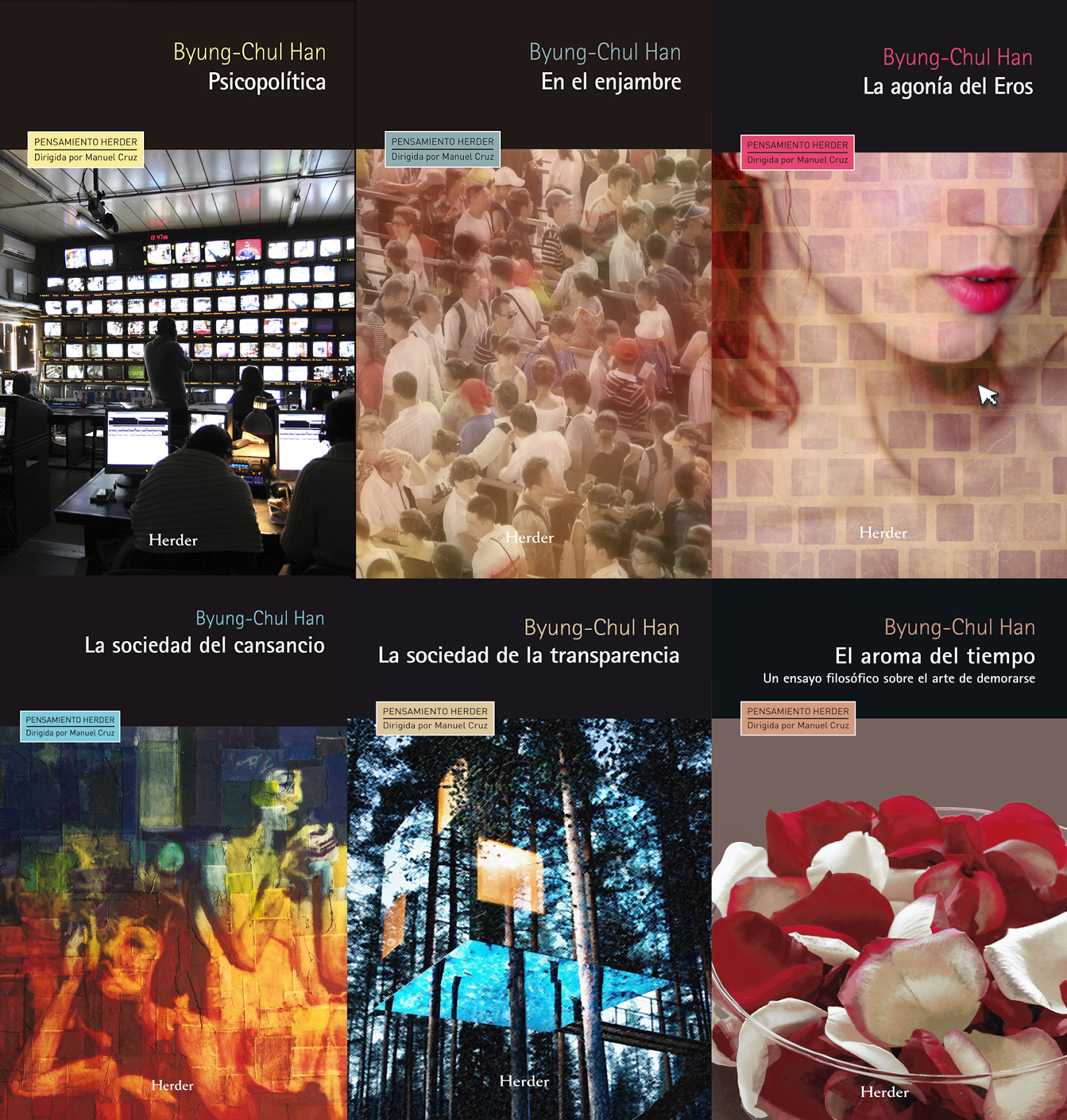 Primeras ediciones, en su lengua original: El aroma del tiempo (2009); La sociedad del cansancio (2010); La agonía del Eros (2012); La sociedad de la transparencia (2012); En el enjambre (2013) y Psicopolítica (2014).