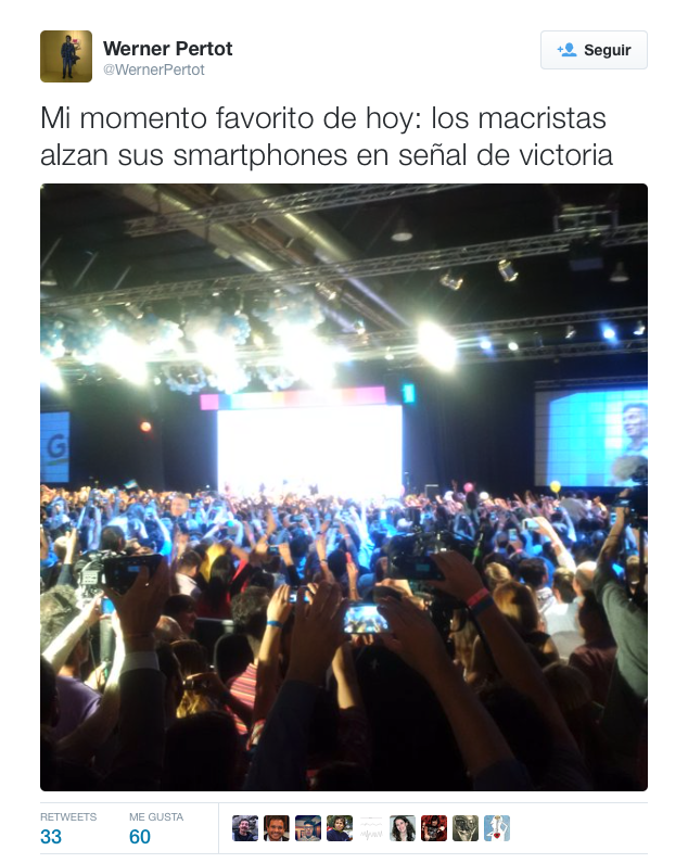 Werner Pertot. La fotografía fue tomada durante los festejos tras la victoria de Cambiemos. |
