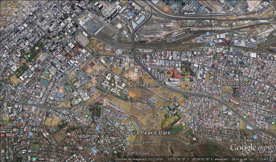 En pleno centro de esa urbe se encuentra un barrio baldío, District Six, escenario de uno de los capítulos más nefastos del apartheid. En 1968, 60 mil personas “no blancas” –particular eufemismo para llamar a la población afro o “de color”– fueron expulsadas de sus casas y éstas demolidas por topadoras. Hoy, como herencia de ese pasado que ni la constitución más “de avanzada” pudo diluir, el 80% del barrio exhibe terrenos plagados de malezas. El gobierno aún no pudo zanjar esa injusticia histórica ni reconstruir sobre esos espacios cuya propiedad sigue en litigio, más allá del edificio de la Universidad Tecnológica. De hecho hubo que esperar casi cincuenta años para que la primera familia regresara, acto que fue más simbólico que sistemático.
