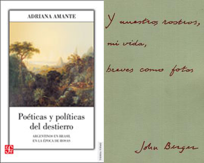 Ambos siglos produjeron el definitivo pasaje del campo a la ciudad. Los proyectos modernizadores se producen en base a las condiciones de ese movimiento histórico, el Estado, la política, el trabajo, la economía, el derecho, la guerra y las comunicaciones alimentan la locomotora que lleva de un espacio al otro: de la naturaleza a la cultura, de la barbarie a la civilización, del arado a la máquina de vapor, de la tracción animal a la mecánica, de la tradición oral al libro impreso, de un pueblo del interior a Paris, Buenos Aires o Shangai. Raymond Williams, en el libro de Amante, aparece en cuatro oportunidades, su trabajo estudia modos de percepción. Pero en este sentido, le debe más a otro marxista, también inglés: John Berger. Fallecido a los noventa años, el marxista que abordó con mayor precisión y fundamento el asunto del destierro. Poéticas y políticas del destierro. Argentinos en Brasil en la época de Rosas mantiene con la obra de Berger una relación integral: la conceptualización que se desprende de la organización de los capítulos y el modo de escribir. Amante, como Berger, estudia el asunto del exilio, el de los desplazamientos, los espacios; pero también las imágenes, los paisajes, la percepción visual. Estudia écfrasis, descripciones de objetos visuales. Modos de ver: