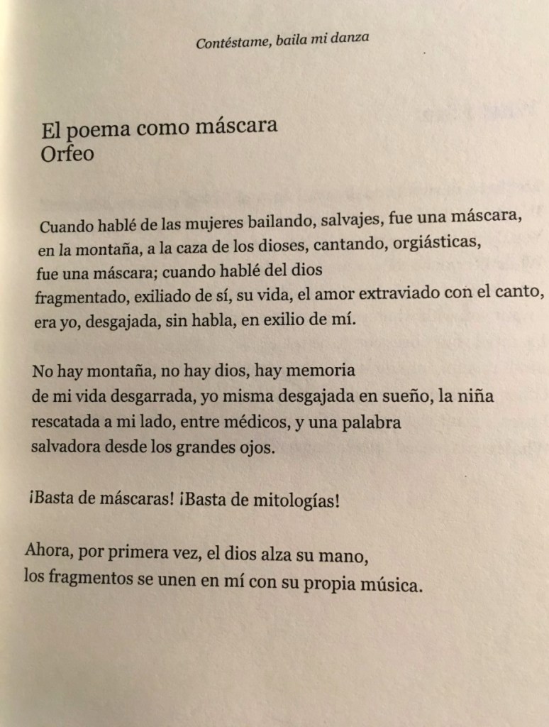 Por ello, como una obra en proceso, y al mismo tiempo como la culminación de un largo camino de lectura, escritura y aprendizaje, esta nueva edición bilingüe de Contéstame, baila mi danza de fines del 2019 en Ediciones Salta el pez parece haber llegado a su forma definitiva: Antología pionera en la traducción de poesía norteamericana al español escrita por poetas mujeres es justamente esta época, donde las voces femeninas son al fin escuchadas, la que quizás pueda leerla en su forma plena y total: 13 voces reunidas en modo bilingüe traducidas por Diana Bellessi. Antología de siete poetas (Ediciones último Reino, 1984), luego de diez (Angría, 1994) y finalmente de trece; es esta cifra impar, indivisible con exactitud, la que da término a un largo proceso de construcción de 35 años dentro del mundo poético de esta excelsa poeta.