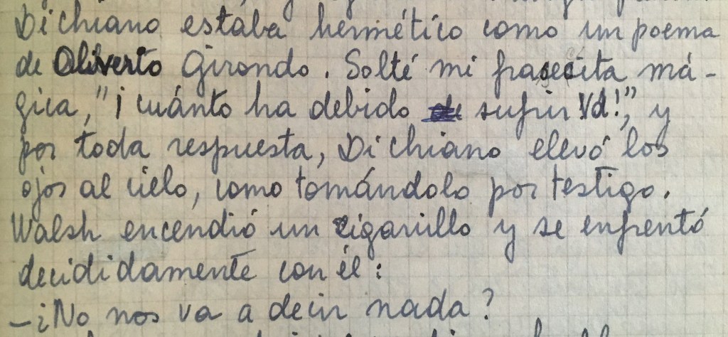 Los cuadernos de Enriqueta fueron leídos por Rodolfo en algún momento. Quedan sus marcas y unos pocos agregados. Quizás un modo complementario, e invertido, de aquel “‘hicimos’, ‘fuimos’, ‘descubrimos’”. Años antes, Enriqueta asentó en sus cuadernos, y no pocas veces, el respeto por el trabajo del autor de Variaciones en rojo y el agradecimiento por el convite a participar de la investigación. Deja constancia, no obstante, que Operación masacre no le pertenece, y que es “un magnífico libro que retrata todo un aspecto del país en un momento dado”. Ese elogio se hará evanescente para los investigadores del futuro, como tenue será su presencia. Enriqueta fue un secreto en vida y es ahora una revelación literaria, que la editorial (y algunos comentaristas) presenta con halo romántico. Su hermetismo sobre su participación en la investigación sobre “El caso Livraga o los Diez fusilados de José León Suárez” es algo excepcional. En su departamento de la calle Pasteur, en el barrio del Once, quedaron atesorados estos cuadernos entre sus papeles. Su vecino, el escritor Carlos Correas, había definido a esa calle como una “frontera entre las seccionales 5 y 7. Una seccional da seguridad a la vereda impar; la otra, a la vereda par; pero el Departamento de Policía no respeta esa frontera…” Tampoco Historia de una investigación respeta las fronteras que suelen trazarse entre la literatura y el buen periodismo. Afortunadamente.