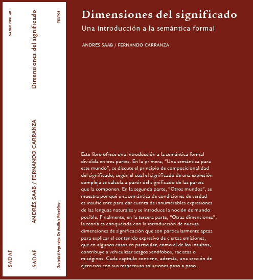 Dimensiones del Significado es, por un lado, un intento explícito de poner en español los últimos avances en semántica formal y, por el otro, un intento más bien implícito de dejar en evidencia los límites de lo matematizable en materia de significación lingüística. Por lo tanto, lo que efectivamente aparece expuesto en este libro es un repaso de las contribuciones más importantes en semántica formal en los últimos cuarenta años. Esto incluye una presentación (si bien no exhaustiva, al menos lo suficientemente ilustrativa) de una teoría semántica de condiciones de verdad, según la cual dar el significado de un subconjunto de oraciones generables por cualquier gramática humana es dar ni más ni menos que las condiciones del mundo (o de nuestro modelo del mundo) que harían verdaderas a las oraciones en cuestión. El origen de tal teoría tiene un recorrido reconocible en la tradición iniciada por los escritos “lingüísticos” de Frege a finales del siglo XIX y principios del siglo XX, pasando por las contribuciones de Tarski y, muy en particular, por las aplicaciones de Richard Montague y, luego, Barbara Partee, ya en la década del setenta. En principio, la única diferencia notable con respecto a esas tradiciones es que nos inclinamos por asumir, con Heim y Kratzer y otras referencias importantes, una gramática que a grandes rasgos podemos definir como transformacional. Pero esta es una cuestión menos sustancial de lo que podría parecer.
