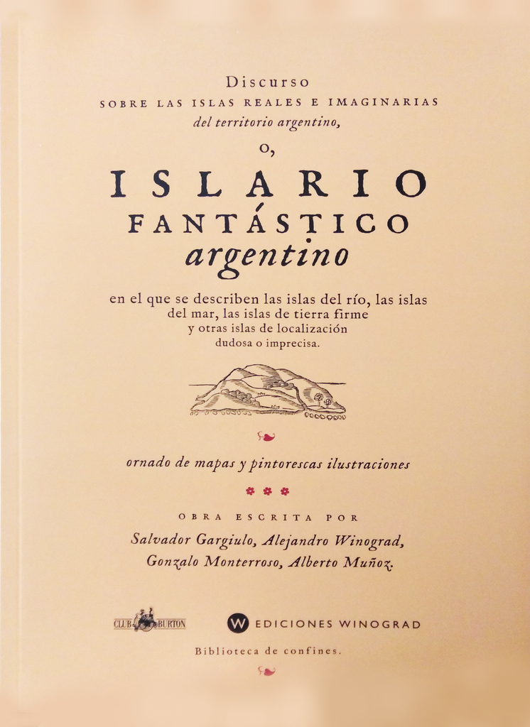Sobre Islario Fantástico argentino en el que se describen las islas del río, las islas del mar, las islas de tierra firme…, de Salvador Gargiulo, Alejandro Winograd, Gonzalo Monterroso y Alberto Muñoz, editado por Ediciones Winograd, 2020. Edición de 50 ejemplares